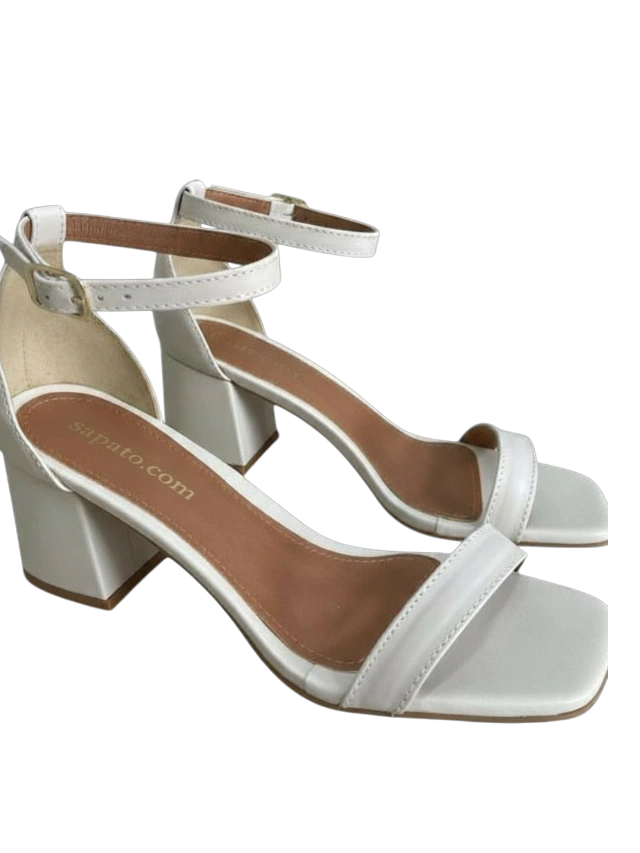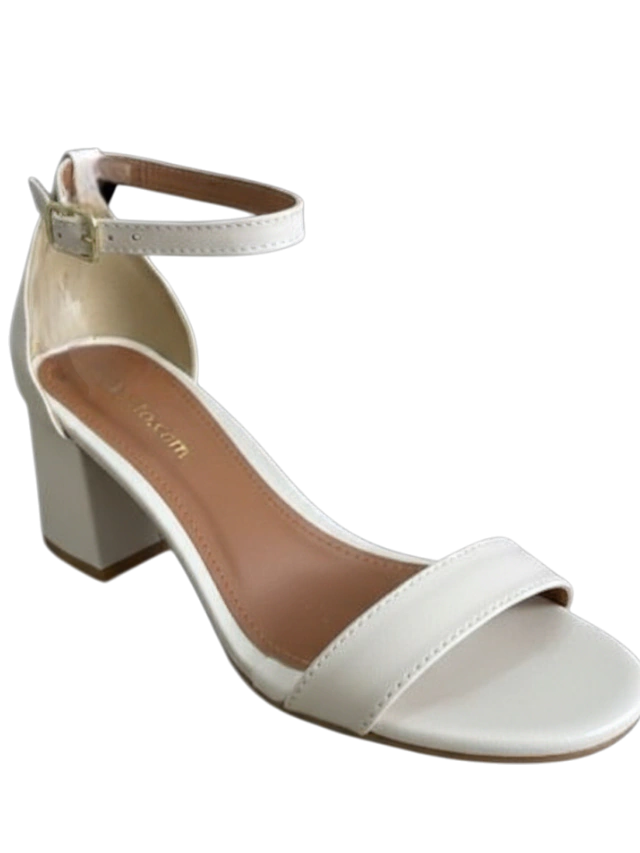 e tira fina fazendo a volta no tornozelo e fechando na lateral com fivela, calcanhar fechado,